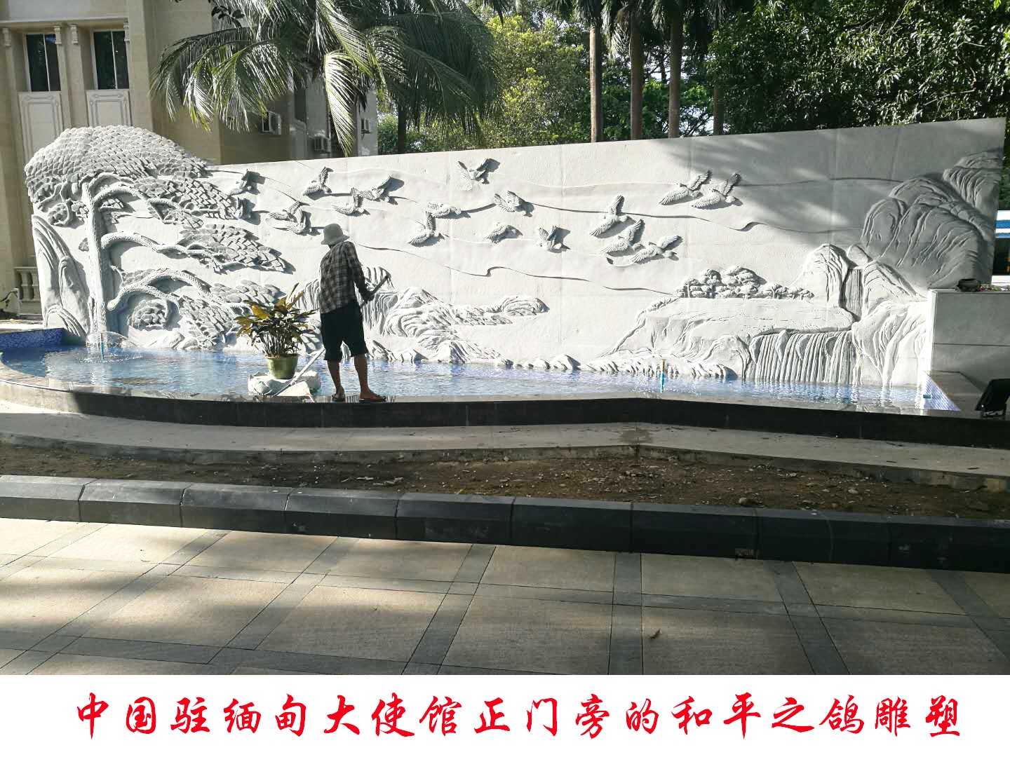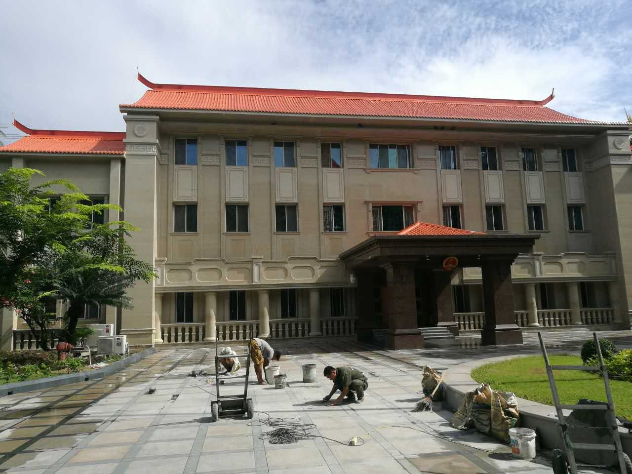 中华人民共和国驻缅甸联邦共和国大使馆1号楼院办公楼外墙石材幕墙工程项目由福建南山集团(缅甸联翔国际发展有限公司承建)